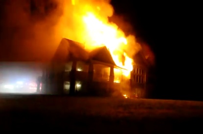 Could this fire have been predicted?: The home business of a psychic advisor burned on Monday in Lake Station, Indiana. The photographer reports the interior stairs and the floor had burned away halting the interior attack.
