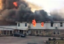 Hazardous materials crews also were on site because of explosions from the cars’ gas tanks. Large plumes of smoke filled the night sky as some nearby residents stopped to watch the blaze.