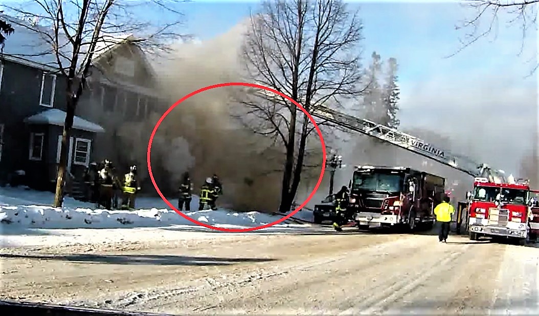 It turns out the fire occurred in January of this year on Stewart Avenue in Nanaimo, British Columbia. As you will hear in the news video below, the man being wheeled out and putting on a bit of a show for the crowd is physically disabled. Firefighters found him in his cottage on the property and carried him to safety (seen on the video). Firefighters say they didn’t put water on the fire immediately due to a downed power line at the burning home.