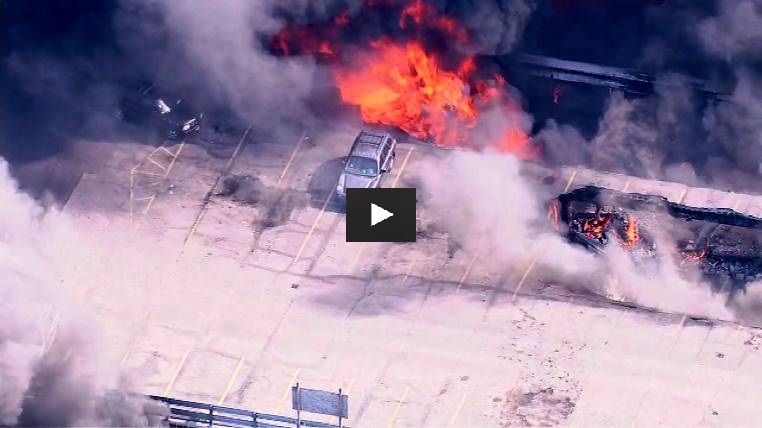 UPDATED – Dashcam video: Vehicle fire with strut explosions in Austin, Texas.
