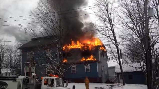 For a number of years we have been seeing the helmet-cams in operation that give us point-of-view (POV) video of firefighters doing their jobs. The clip above is the poor man's version of the helmet-cam extended to the citizen firefighters who bravely staff the green lines. I believe this is what is known as a green line "all hands" job. Green line in the right hand. Video camera in the left. Burning Jetta in front. Garage with melting siding is screen right.