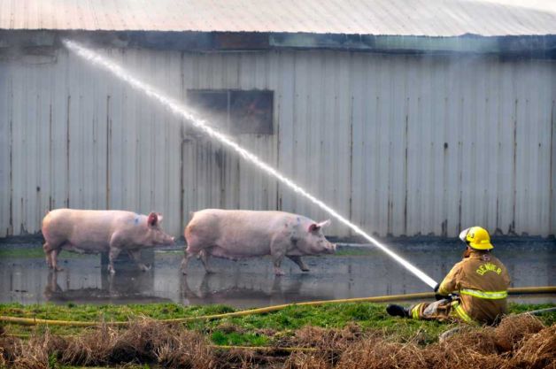 Firefighters allegedly staged the stunt as a hazing prank, and the video was posted to YouTube.