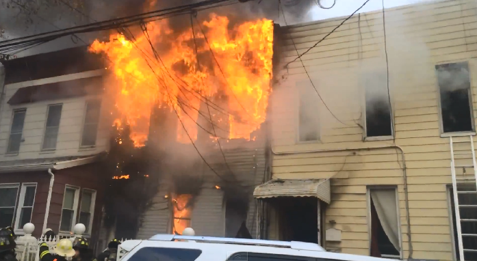 It is from a fire last February 4 at a home on Sixth Avenue in New Hyde Park, New York (Nassau County). Six firefighters were hurt and one of them, Firefighter Max Devane, had to be rescued from the basement. The firefighter is removed from the home at 6:40 in the video above.