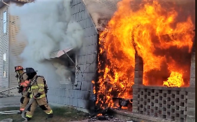 Scuffed and scraped, Smith managed to climb out of the vehicle and start unrolling hoses for firefighters set up at the scene of the two-alarm fire, Scalera said.