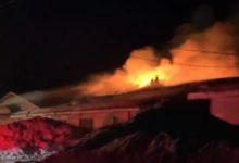 Firefighters experienced a scare when a portion of the roof collapsed, appearing to hit nearby firefighters. However, no firefighters were hurt.