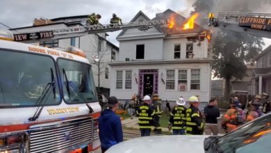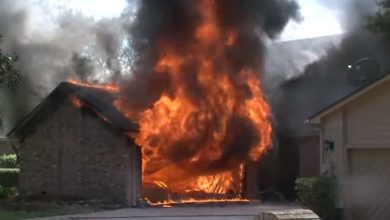 One firefighter fell through the roof while trying to fight the fire. From Sky-8, two other firefighters could be seen crawling over, peering into the hole, and then giving the “okay” signal. Fire dispatch radios also indicated the firefighter was okay.