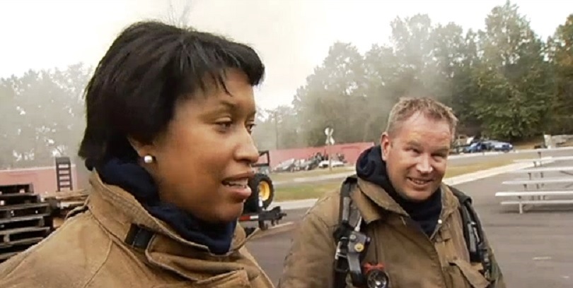 One firefighter was injured battling this four-alarm fire in Edina, Minnesota on Tuesday evening. Watch at :35 in the video above as two firefighters come out from between the fire building and the exposure on Side B (image below). Note the bundle of hose the second firefighter is carrying over his shoulder is burning a bit when he drops it on the ground.
