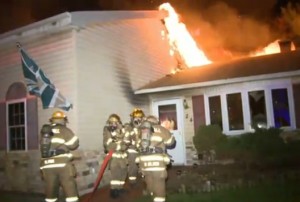 Somehow this video by hermy8 of a fire in De Pere, Wisconsin on August 31, 2012 slipped under the radar when it was posted. There is a lot of action going on even before the arrival of the fire department. It includes a small squad of police officers arriving. Two make their way to the second floor with a sledge hammer via an outside stairway on Side B apparently to check for victims. Their actions are out of view of the camera but by the sudden rush of smoke and their retreat down the stairs it appears they were successful in popping a door. News reports indicate this structure in the 600 block of West James is a garage with a workshop on the second floor.