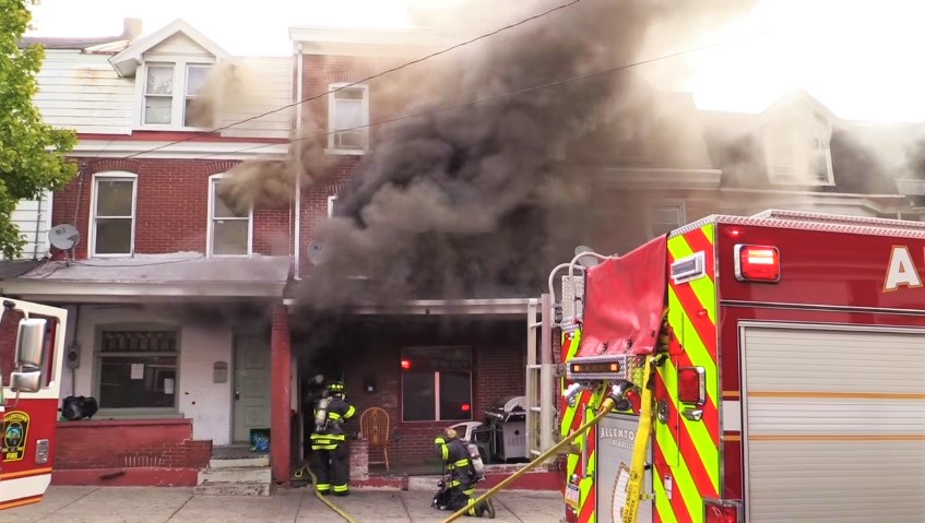 Somehow this video by hermy8 of a fire in De Pere, Wisconsin on August 31, 2012 slipped under the radar when it was posted. There is a lot of action going on even before the arrival of the fire department. It includes a small squad of police officers arriving. Two make their way to the second floor with a sledge hammer via an outside stairway on Side B apparently to check for victims. Their actions are out of view of the camera but by the sudden rush of smoke and their retreat down the stairs it appears they were successful in popping a door. News reports indicate this structure in the 600 block of West James is a garage with a workshop on the second floor.