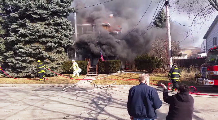 Must see pre-arrival video: Multiple explosions on roof of apartment building.