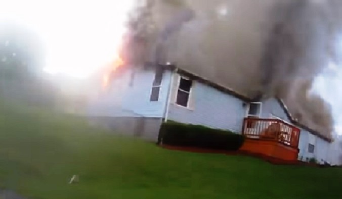 Videos posted by DEPUTYCHIEFJONES from a house fire yesterday afternoon in Hazleton, Pennsylvania (Luzerne County).