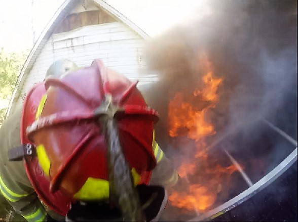 Helmet-cam video: House fire in Highland Park, MI with hydrant issues.