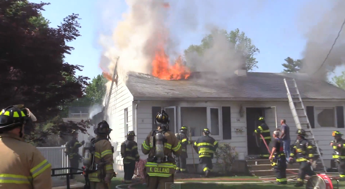 Detroit firefighter impaled on pike pole. Hook goes through cheek after fall through attic floor.