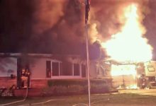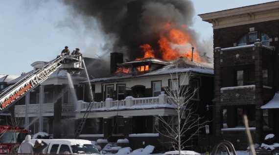 One firefighter was also taken to the hospital after one of the ladder’s they were climbing on to battle the blaze, collapsed under him.