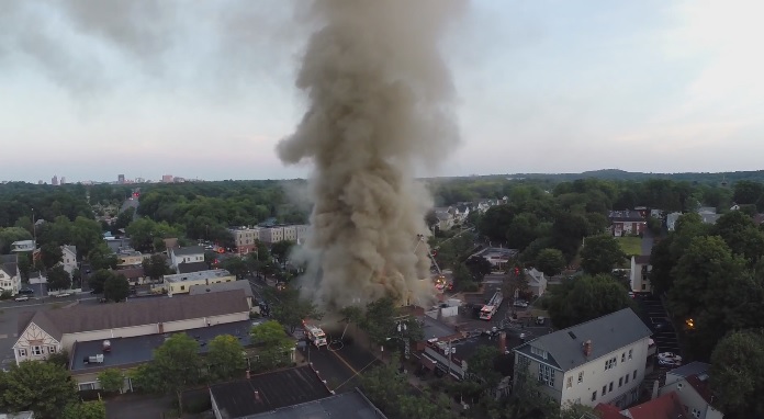 Raw video: 3-alarm house fire in Westford, Massachusetts.