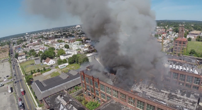Karen Jones watched the rescue from the fourth floor of an adjacent building. She shot video on which you can see that worker on the fifth-floor ledge of that burning complex.