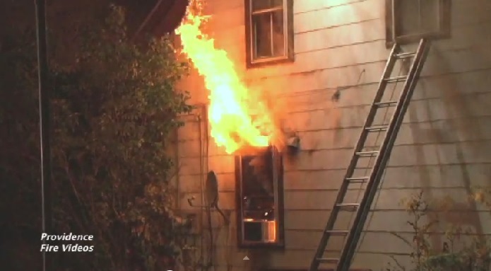 Fire arriving engine crews darken down the fire on the first floor within 10 minutes, however the fire is rapidly extending in the walls and within a few minutes the 2nd and 3rd floors of the main fire building are fully-involved. At one point during the battle, evac tones are sounded and all members pulled out of the building. After they re-group and darken down some of the fire from the exterior hand lines, they re-enter both dwellings to hit the hot spots. The fire was under control 1 hour later. Crews spent a few hours overhauling and mopping up. The fire is under investigation.