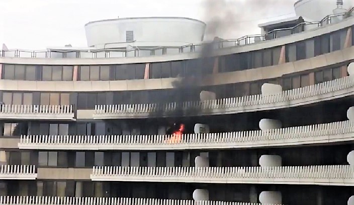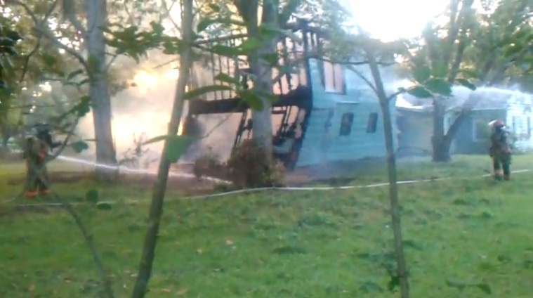 The fire appeared to be under control at about 3:30 p.m., but then flames flared up through the roof again, and firefighters were ordered off the structure. The fire was still smoldering at 4:45 p.m. At one point flames shot out of an upper-floor window of the house.
