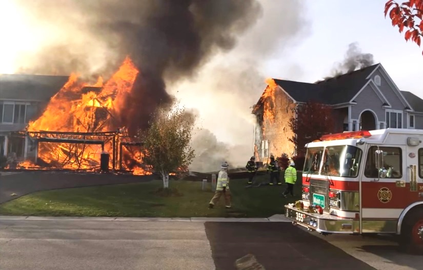 Flames were coming from the first floor of the house when crews arrived on the scene.