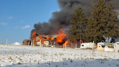 video taken at the multiple alarm fire at Sun-Re Cheese plant in the city of Sunbury on Sunday October 18, 2015.