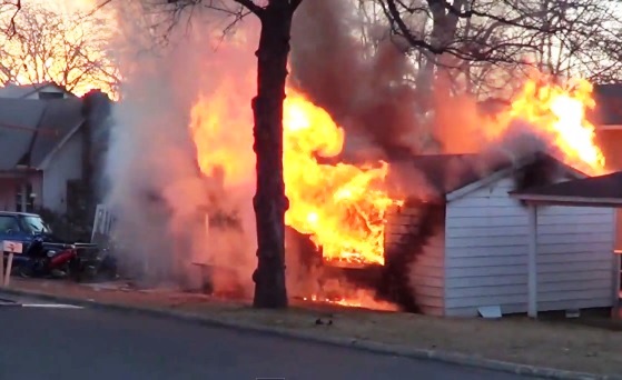 In Newark, Ohio this (Wednesday) morning a firefighter standing on a ground ladder was hit by falling pieces of a burning roof. It was witnessed by viewers of the morning news on WCMH-TV as reporter Marcus Thorpe was doing a live shot from the scene of the house fire.