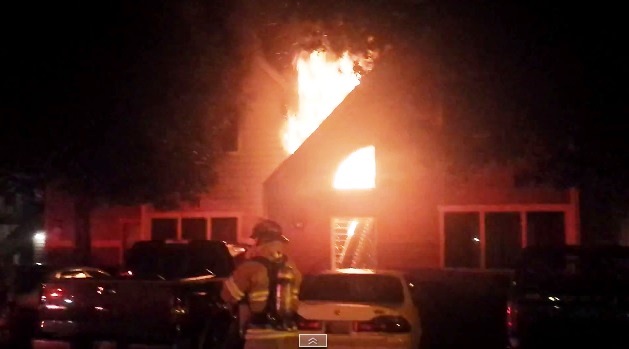 A cellphone charger left in an outlet caused the rear portion of a Hanover Borough apartment complex to go up in flames Monday night, fire officials said.
