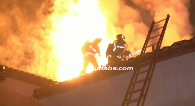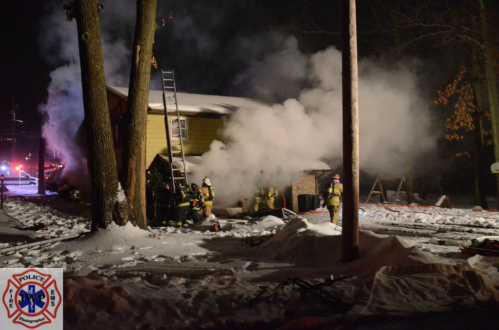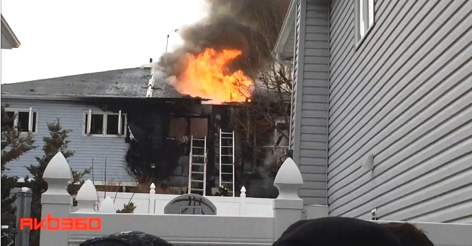 As fire vented out the rear second floor window, two members transmitted a mayday. They were in the original fire building and a ground ladder was called for side 4 of the building. The firefighters couldn’t wait any longer and jumped out the window. EMS transported the firefighters to a local hospital. They sustained minor injuries in the fall.