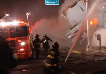 The flames engulfed the porches on the second and third floors in the back of the building. Knowing that people were inside the burning building, firefighters set up rescue efforts.