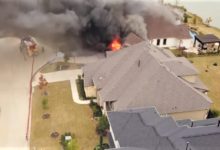 Three men pull up in a boat and try to break a window on the car to free the woman, but they aren’t successful.
