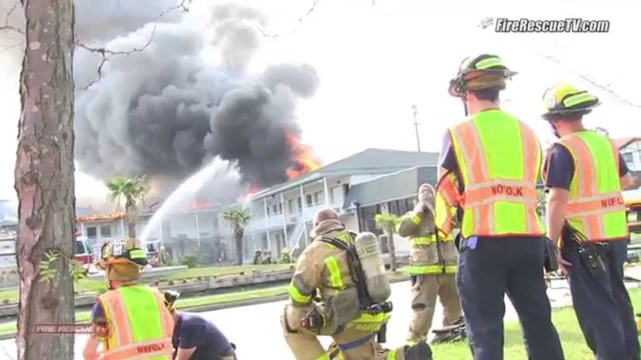 “The force apparently from the fire hose caused him to tip and the ladder went over sideways. He fell as did a firefighter that was just below him on the ladder,” Pompano Beach Fire Rescue spokeswoman Sandra King said.