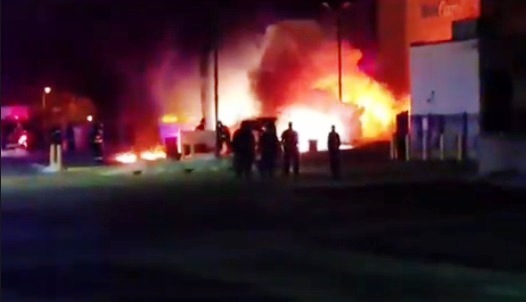 Firefighters extinguished the fire quickly, and found no victims inside. This video shows only a portion of the larger and more dangerous amount of fire inside the structure.