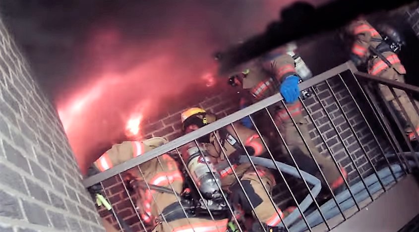 When fire crews arrived, the third floor apartment was fully engulfed in flames and an 82-year-old man was trapped, slumped over on the balcony.