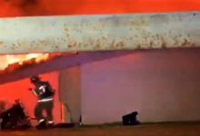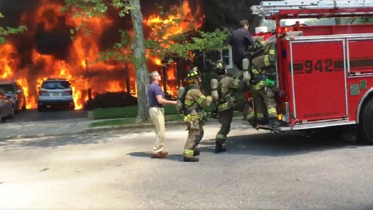 Video, above, from Thomas Lambui taken during a fire today (Tuesday) at Elm Road West and Moriches Drive in Mastic Beach, New York (Suffolk County on Long Island).