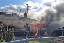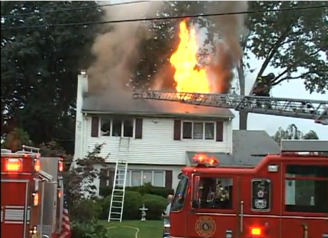 Video, above, from Thomas Lambui taken during a fire today (Tuesday) at Elm Road West and Moriches Drive in Mastic Beach, New York (Suffolk County on Long Island).