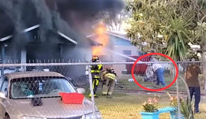 When I first posted the pre-arrival house fire video (above) from Lakeland, Florida on Tuesday, I told you there was a lot going on in the somewhat wild video. This includes lots of people walking around near the burning home, a car with items on the hood driven across the grass, an arrest of one of the residents for arson and a man in civilian clothes putting the first water on the fire.