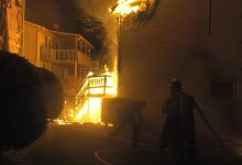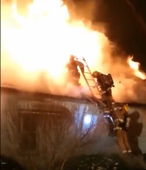 Video shows part of an apartment building collapsing during a fire Friday on Ted Drive in Gaylord, Michigan. News coverage says one firefighter was trapped but is okay.