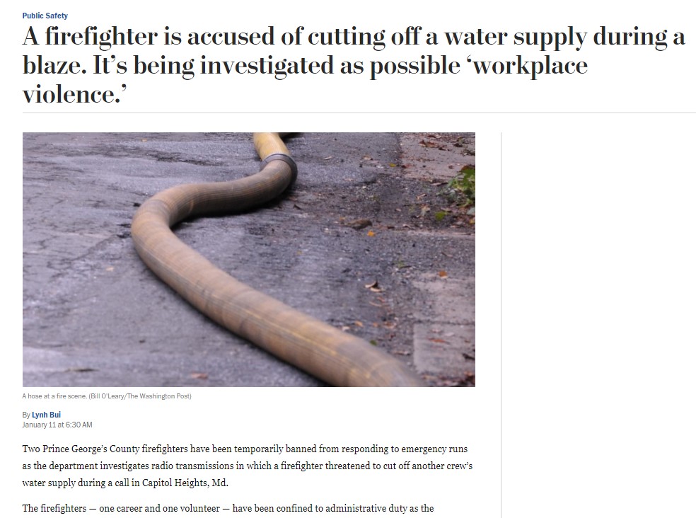 The Washington Post’s Lynh Bui is the latest to report on the December 29 allegation of fireground sabotage at a house fire in Capitol Heights, Maryland. After almost two weeks, there’s still no word from the Prince George’s County Fire/EMS Department on whether what was described rather clearly on the radio by firefighters actually occurred and any decision about disciplinary action.