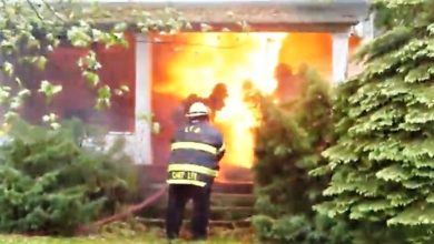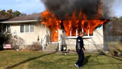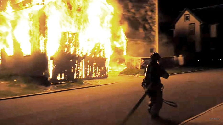 Fire officials say the blaze broke out inside the naked man’s apartment. It is unclear what injuries the man sustained or why he was handcuffed by police before being transported.