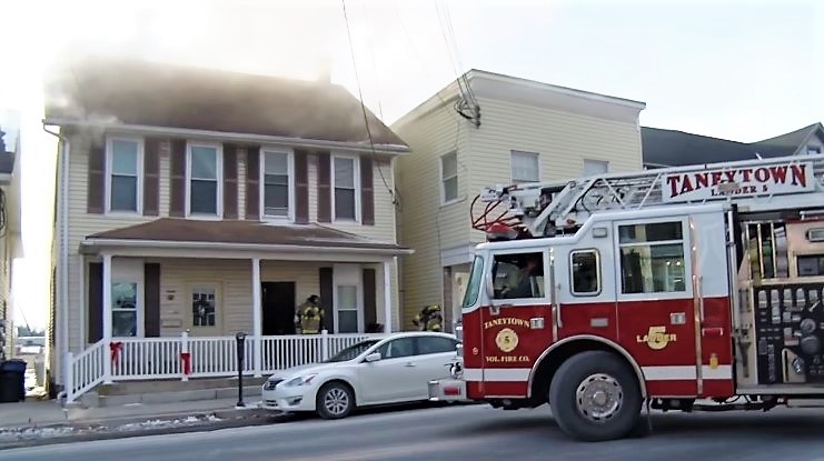 Crews initially achieved knock down of the initial apartment, however, fire spread to the second floor and the attic. A 2nd Alarm was requested and crews were pulled from the building and a defensive attack brought the fire under control. Two civilians in the second floor self evacuated prior to arrival of fire units. Thankfully no injuries at this fire, and the cause is under investigation.
