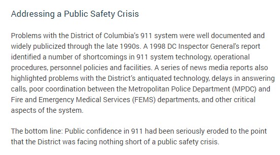 The bottom line: Public confidence in 911 has been seriously eroded to the point that the District was facing nothing short of a public safety crisis.