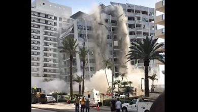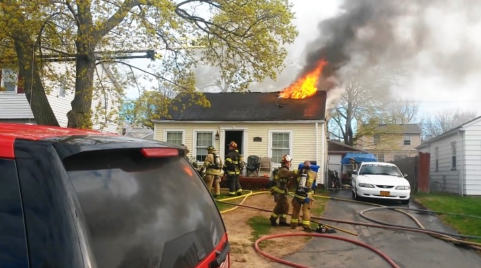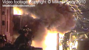 One of the two firefighters who were casualties was pulled out of the library by several firefighters. One firefighter was administering first aid, applying to hands to the firefighter’s chest.