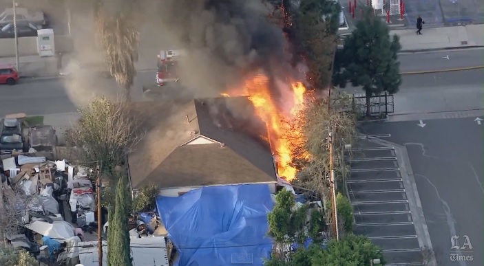 Pre-arrival video from Mahdi Alibakhshian taken during a fire yesterday (Monday) in Beverly Hills, California. More video below from Aaron Youshei.