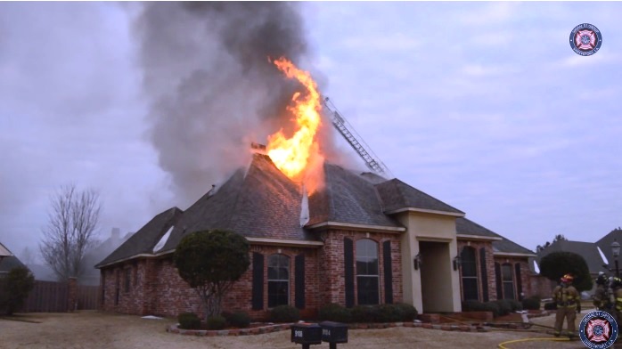 Upon arrival, firefighters observed smoke and flames coming from the garage and as they approached the home, fire began to spread throughout the home and out the garage and through the roof.