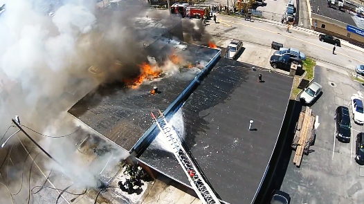 Early video from LOUDLABS NEWS taken during a June 12 fire in a commercial building on W. Baseline Street in San Bernardino, California.