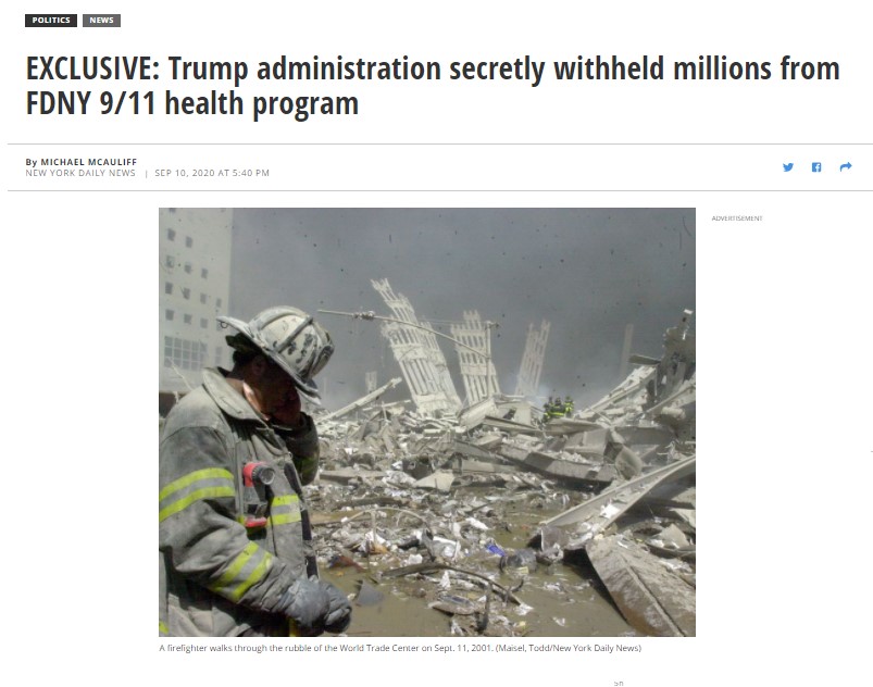 News report: Feds withholding $4 million from program treating FDNY’s 9/11 illnesses