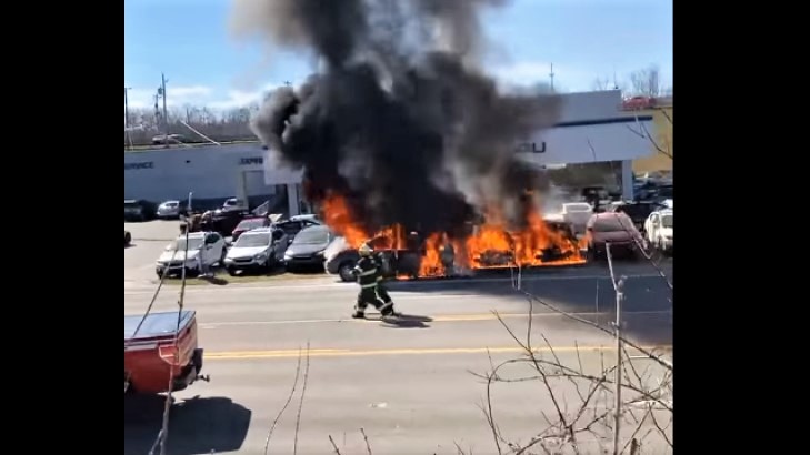 Pre-arrival video after six vehicles burned last Tuesday at a auto dealership in Huntington, West Virginia. News coverage here. Thanks to Rob Shuff for sending this Facebook video from Tj Carper.