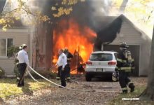 A Baltimore County Police officer responding to a call of a shooting and explosion in Woodlawn earlier this month arrived to find a house engulfed in flames and a suspect shooting at him as soon as he stepped out of his police cruiser, beginning what appears to be an intense and lethal volley of gunfire, according to police body camera footage released Friday.