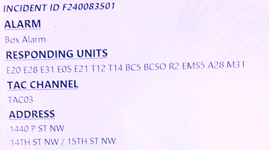 On Saturday, DC911 dispatched the wrong units to a reported fire at a grocery store in Logan Circle. The 13 fire and EMS units sent on that building fire assignment were all miles away from the Whole Foods at 1440 P Street NW. One of the closer engines not initially dispatched by DC911 said on the radio, “They need to re-dispatch that. They butchered that.” While firefighters realized immediately that the assignment was wrong, it took DC911 at least three minutes before the call was properly dispatched. Luckily, it turned out to be a minor problem with a heater at a store entrance.