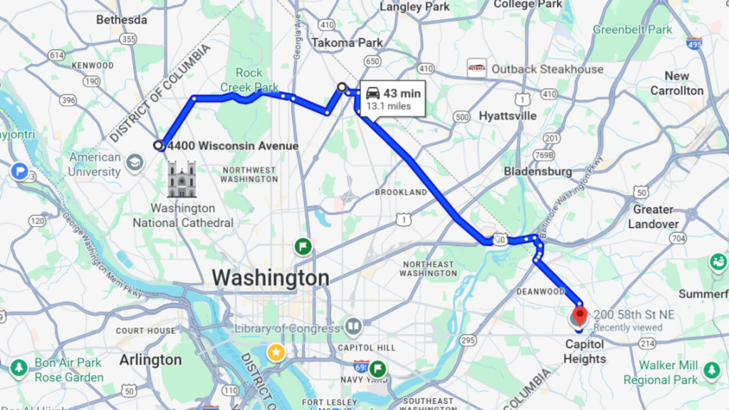 Paramedic Engine 20 from the Tenleytown neighborhood in Upper Northwest was also transferred to the same Northeast firehouse as Truck 14. At 2:19 p.m., it was dispatched as the closest unit to a sick call in the 200 block of 58th Street NE. For reference, that’s just three blocks from the DC border with the Town of Capitol Heights in Prince George’s County (map above). That’s another 13-mile ride. Once again, there was a complete lack of situational awareness, with no dispatcher or supervisor asking why Engine 20 was sent to 58th Street NE. As with Truck 14, it took the fire company to alert dispatchers to the error (radio traffic is below).
