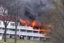 A 34-year-old woman was pronounced dead at the scene of the blaze and a 22-year-old man was rushed to an area hospital in critical condition, police said.